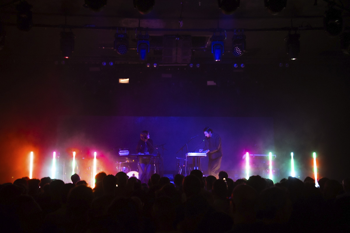 Lo bueno de que todo estuviera programado con esos tiempos es que, durante su actuación, la sala estaba ya casi llena, pero la parte negativa es la de siempre, la del poco respeto que hay, en general, hacia los teloneros. Así que la actuación se desarrolló bajo un constante murmullo/ruido originado por esa gente que ignora que sobre el escenario hay dos personas haciendo su trabajo e intentando demostrar todas sus cualidades. La propuesta del dúo merecía algo más de silencio, desde luego. Aun así, gracias a que nos situamos en las primeras filas, pudimos disfrutar de la genuina propuesta electrónica de TLFPA.